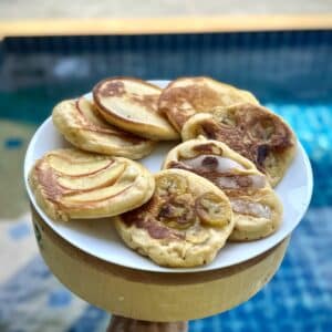 These fruit pancakes bring natural sweetness from banana, apple and coconut directly into the batter. As the pancakes cook, the fruit caramelizes gently in the pan, creating soft, fluffy pancakes with less added sugar. A simple homemade breakfast that feels indulgent while staying balanced.